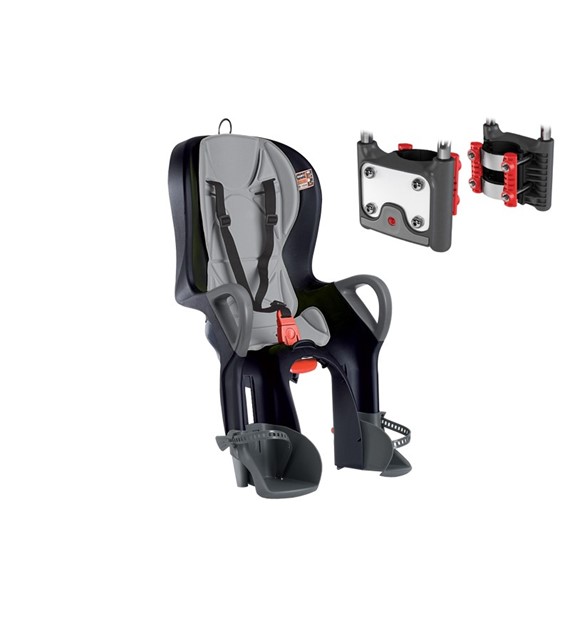 Dopracowany w szczegółach fotelik z najwyższej półki. Siedmiostopniowy system pochylania fotelika (max 15°) pozwala dobrać optymalną pozycję i w razie potrzeby umożliwia dziecku sen. Dzięki praktycznemu uchwytowi pochylenia można dokonać bez wyjmowania małego pasażera, także w trakcie jazdy. Pochylenie fotelika nie zmienia jego środka ciężkości i dzięki temu nie wpływa negatywnie na prowadzenie roweru. Skorupa wykonana z dwóch rodzajów kompozytu zapewnia pełne bezpieczeństwo oraz wygodę. Uchwyty na ręce pomagają dziecku utrzymać równowagę i zwiększają poczucie pewności siebie. Ośmiostopniowa regulacja w poziomie pozwala na dobranie optymalnego położenia względem siodełka roweru. Wysoka wyściółka doskonale tłumi małe drgania oraz zapewnia komfort termiczny, zarówno w chłodne jak i gorące dni. Wyściółka wykonana jest z materiału nie nasiąkającego wodą. Trzypunktowe, regulowane pasy bezpieczeństwa zamykane bezpieczną klamrą, której dziecko nie może samo otworzyć. Sześciostopniowa regulacja podnóżków pozwala na idealne dopasowanie do długości nóg dziecka. Ich konstrukcja całkowicie eliminuje możliwość wkręcenia stopy pasażera w szprychy koła. Z tyłu oparcia znajduje się element odblaskowy znacznie zwiększający bezpieczeństwo na drodze. Wyrafinowane technicznie mocowanie automatycznie dopasowuje się do średnicy rury (w zakresie od 28 do 40 mm). Jest kompatybilne z rurami o owalnym przekroju oraz z górnym lub dolnym prowadzeniem linki od przedniej przerzutki. Bezpieczne wpięcie prętów mocujących fotelik - słyszalne "kliknięcie". Warunkiem niezbędnym do korzystania przez dziecko z fotelika jest umiejętność samodzielnego siedzenia bez podparcia.
